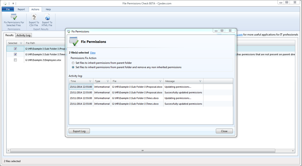 permissions you have placed on your folders. Once such files have been located by the program, you have the option to set them back to inheriting permissions and remove any explicit permissions on them
